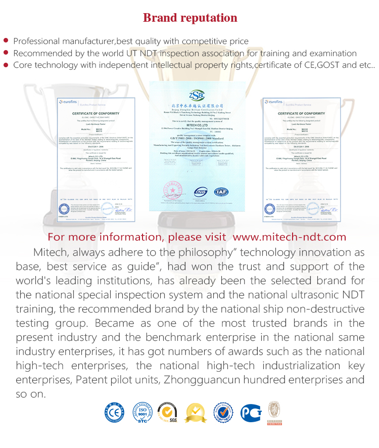 Mitech Series portable leeb hardness testers with customized attached files including product certificate, warranty card, product manual, packing list.  The attached files adopt the special printed paper. The manual is with graphic design, beautiful, easy to understand, easy to save for a long time.