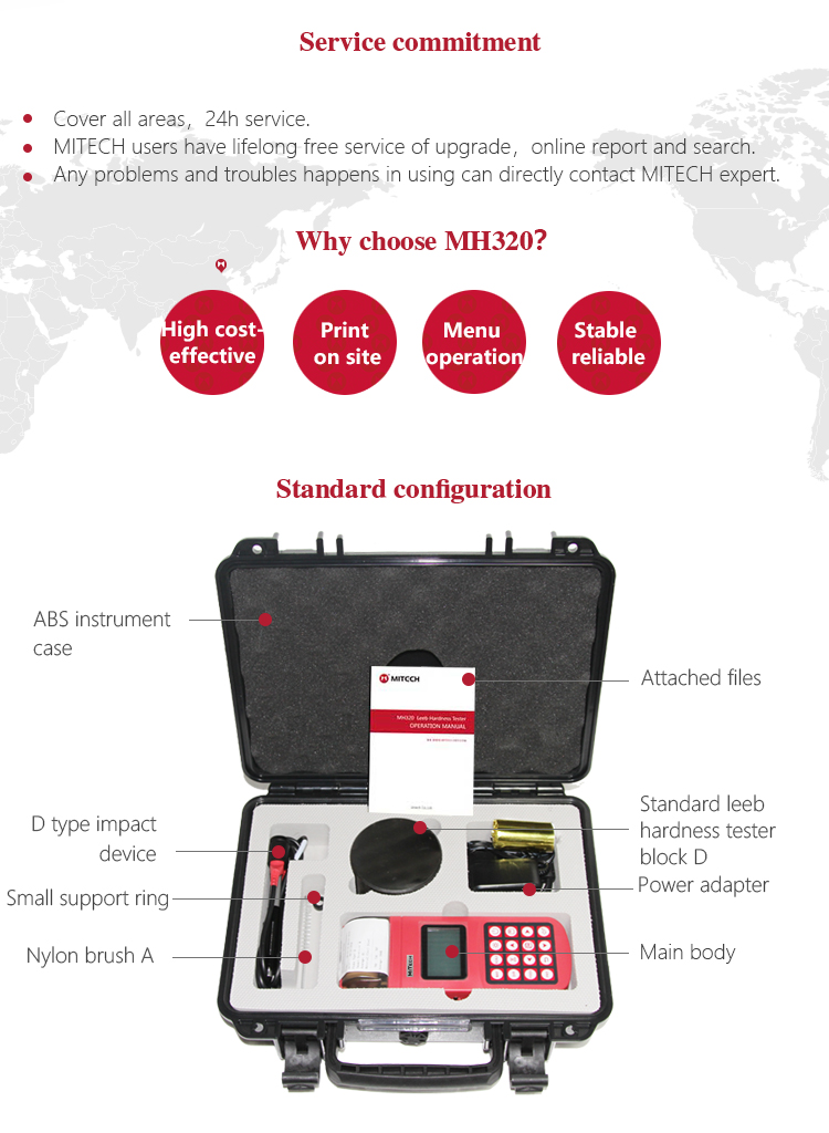 The instrument case of Mitech series portable leeb hardness,  length 35.5cm, width 19cm, height 11cm, weight of 1.5kg.