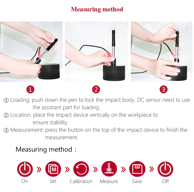 ----Press the release button on the upside of the impact device to test. The sample and the impact device as well as the operator are all required to be stable now. The action direction should pass the axis of the impact device.