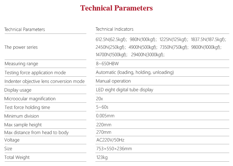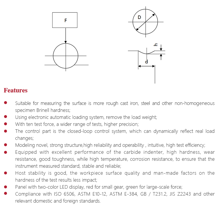 l Compliance with ISO 6506, ASTM E10-12, ASTM E-384, GB / T231.2, JIS Z2243 and other relevant domestic and foreign