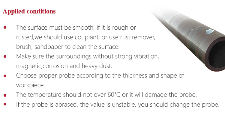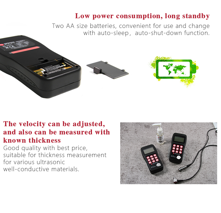 Instrument FeaturesSuitable for measuring metal (such as steel, cast iron, aluminum, copper, etc.) , plastics, ceramics, glass, fiber glass and any other good ultrasonic conductors;
