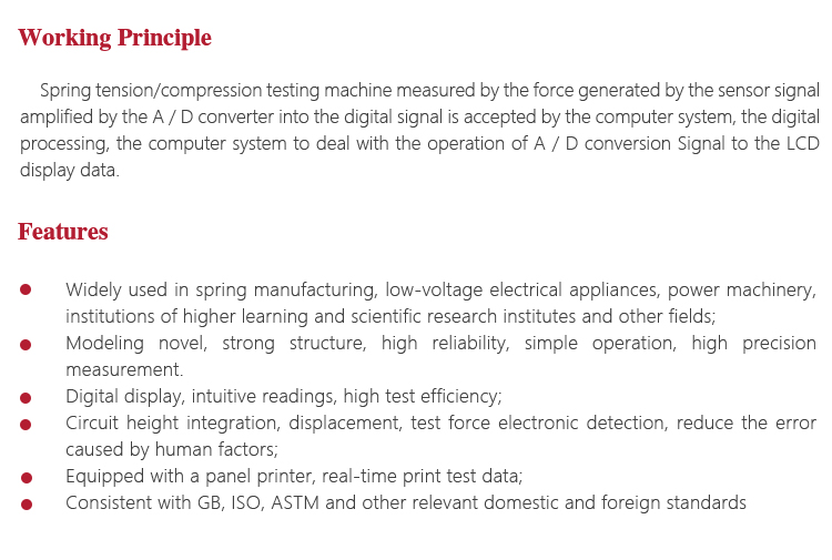 Instrument Featuresl Widely used in spring manufacturing, low-voltage electrical appliances, power machinery, institutions of higher learning and