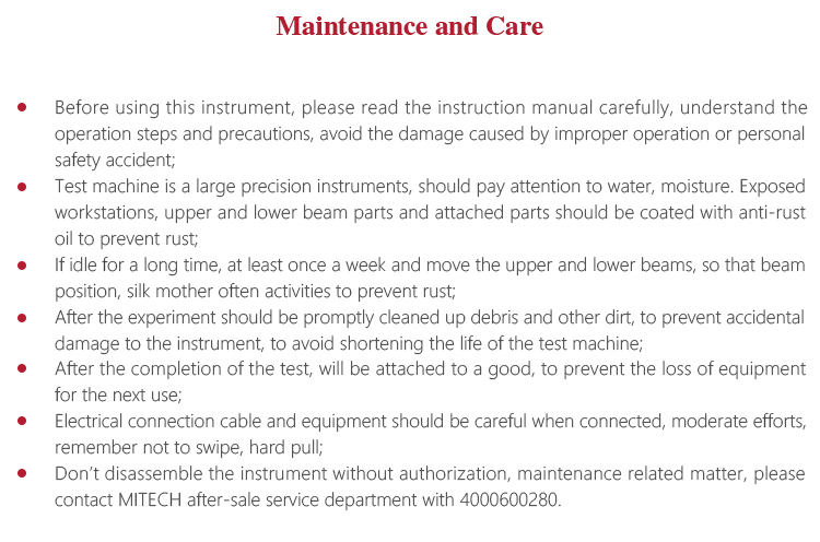 l Don’t disassemble the instrument without authorization, maintenance related matter, please contact MITECH after-sale service department with 4000600280.
