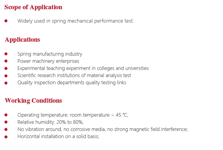 Instrument Featuresl Widely used in spring manufacturing, low-voltage electrical appliances, power machinery, institutions of higher learning and