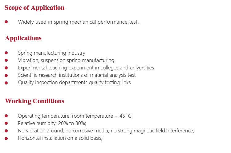 Instrument Featuresl Widely used in spring manufacturing, automotive suspension springs, vibration springs, institutions of higher learning and
