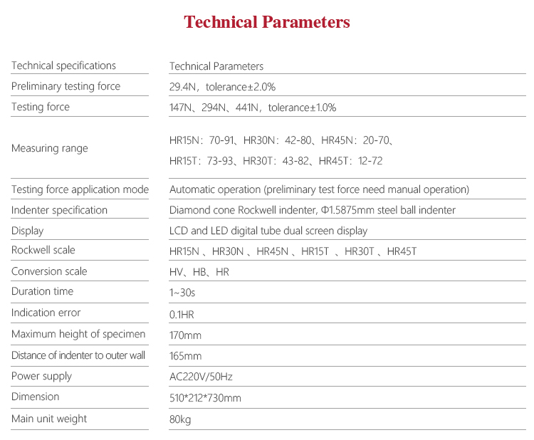 | Rockwell scale | HR15N 、HR30N 、HR45N 、HR15T 、HR30T 、HR45T |