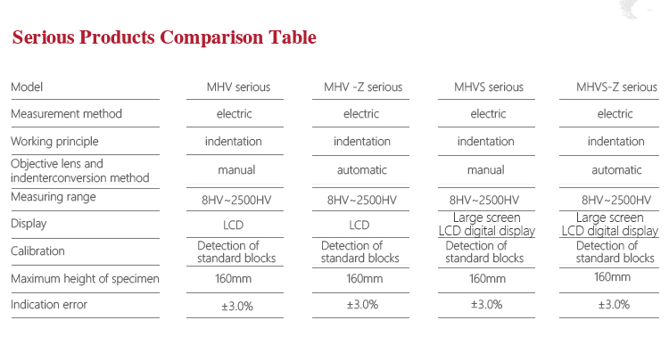 | Measurement range | 8HV0.3~2500HV10 |