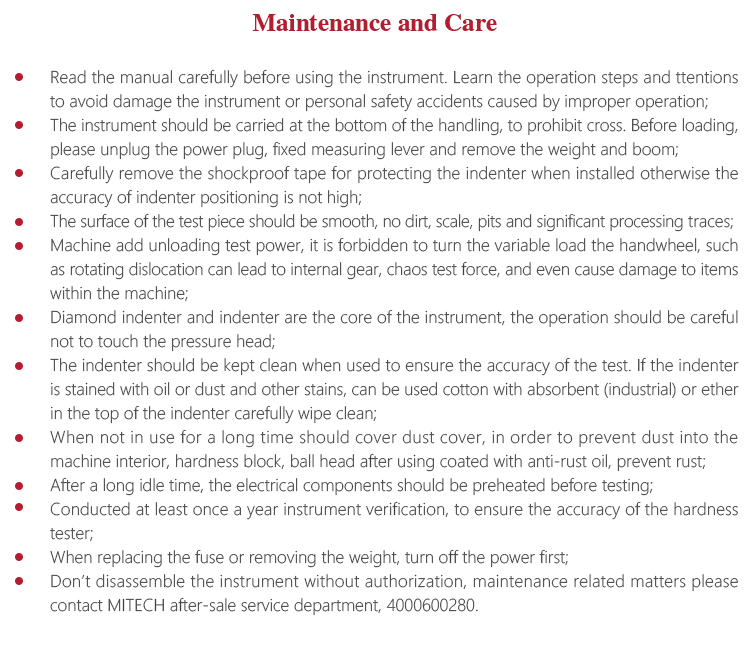 Conducted at least once a year instrument verification, to ensure the accuracy of the hardness tester