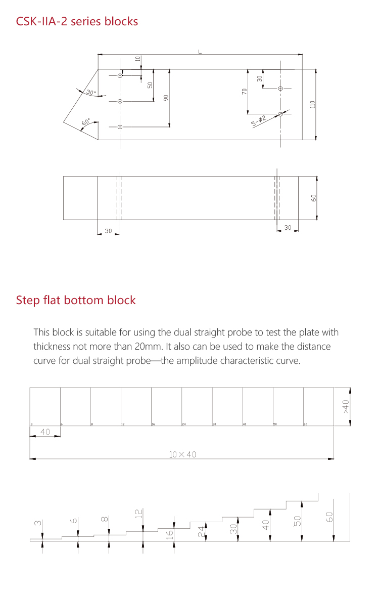 | There are many optional dual straight probes with various specifications like 1.25P/2.5P/5P、Φ10、Φ14、Φ20, which are suitable for flaw detecting the thin plates and bars. The probe radian can be selected according to the diameter of the bars. | |