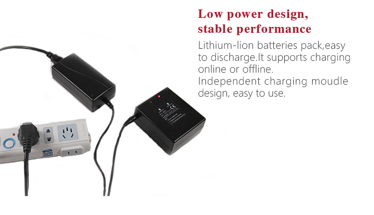 The large capacity lithium battery module is easy to be assembled and disassembled. It can be charged independently but also charged by inserting wire. Its continuously working time is more than 10 hours.