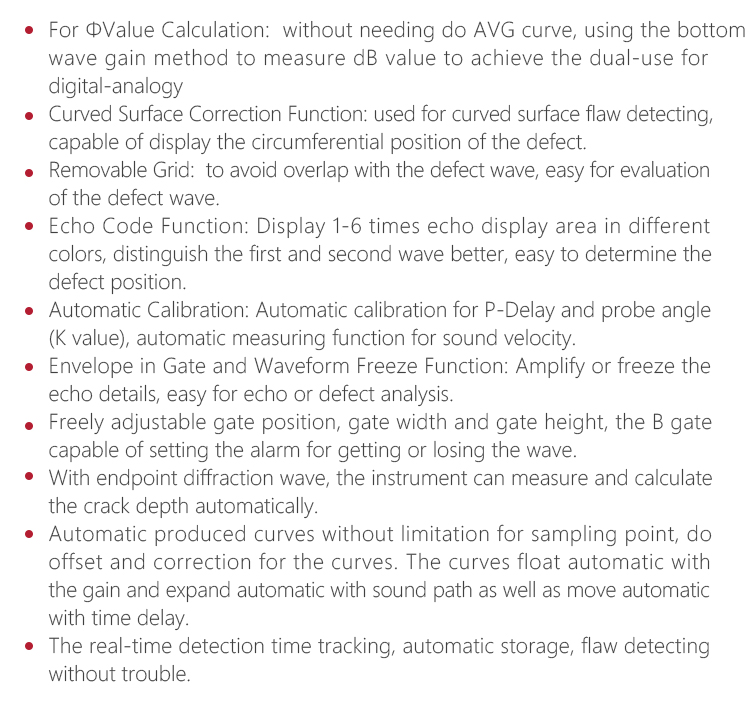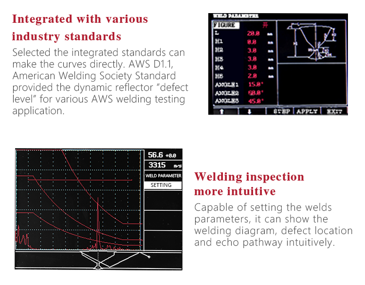 | Defect characterization | calculate the equivalent size of the flaw easily and quickly to facilitate the judgment of artificia |