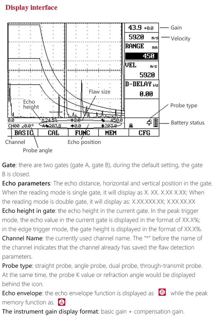Instrument FeaturesGate position, gate width and gate height can be adjustable at will. The B gate can chose to set wave-getting alarm or wave-losing alarm. The beep in gate and LED light can be alarmed or closed (the LED light alarm is very effective under the noise environment).
