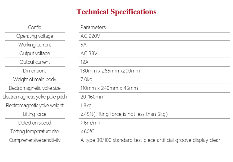 MITECH CJX-A Multi-functional magnetic flaw detector is based on the interaction of magnetic field leakage and powder. It can accurately show the shape of the leakage, as well as its position, size and severity, thus tells the damage level.The instrument uses a variety of magnetization methods, can detect all parts of the workpiece, widely used in petroleum, chemical, metallurgical, shipbuilding,aviation, railway and other areas of defect detection. It is a necessary professional precision instrument of quality control, in-service safety monitoring and life assessment. |