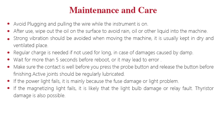 l Make sure the probe is well connected with surface of workpiece, then press the key to magnetize, the result is in good situation.