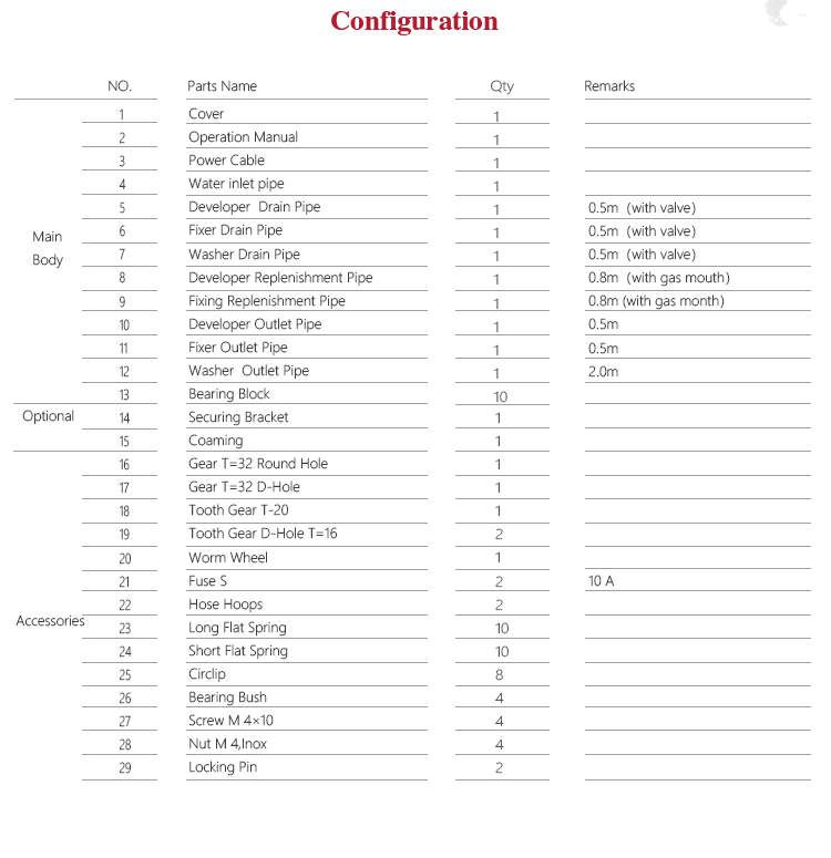| Fixer Temperature | 20~40℃(adjustable) |