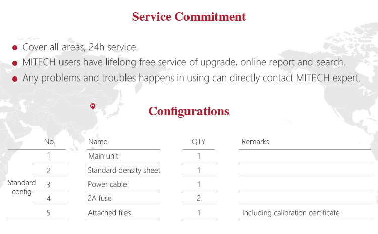 l Equipped with standard density sheet, can be used to verify the accuracy of the instrument to ensure accurate