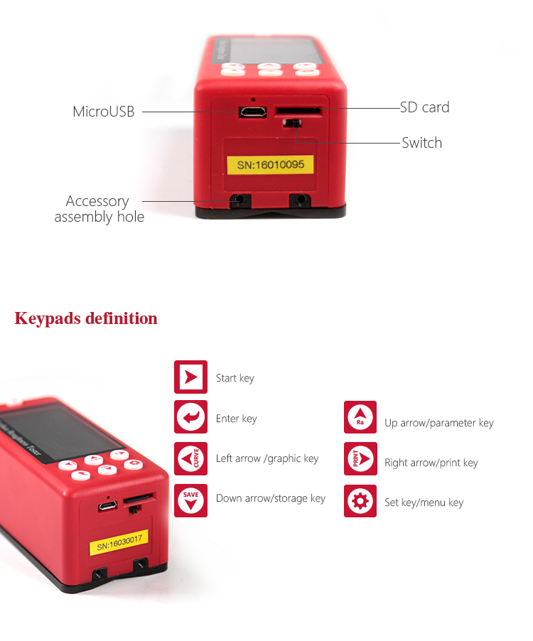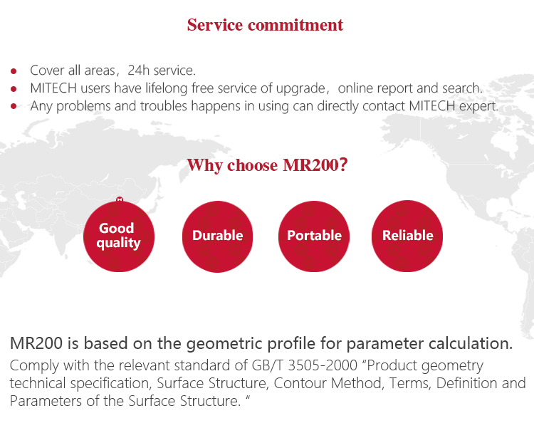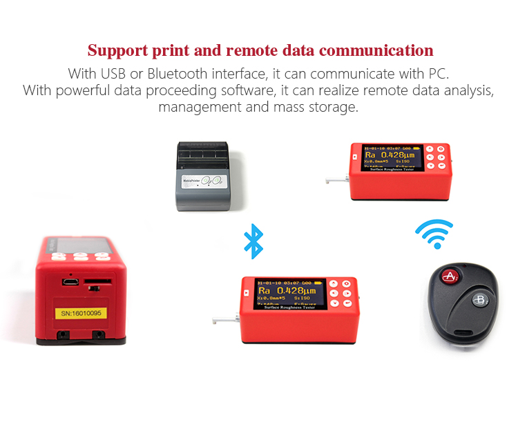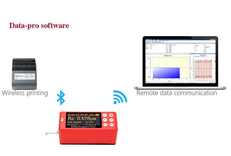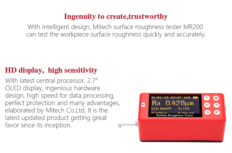 The MR200 surface roughness tester is a new upgrade instrument which adopts the newest processor. This instrument adopts 2.7 inch OLED display, combines accurate measurement, exquisite design, fast process rate and complete protection in one host. It is highly favored by users since it was produced, it has large measurement range, superior than other similar products and can meet different needs of users. By connecting with Micro-USB port, Bluetooth, SD card, it can do wireless remote control, measurement, print and communicate with PC and store massive data. It has been widely used in the quality control process of various precision metals, plays an important and necessary role in rising production qualification rate and saving cost.