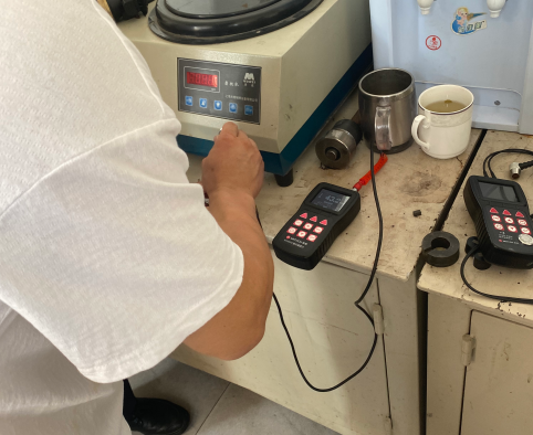 現場了解到需要檢測硬度的工件為熱處理后柱形工件。美泰工程師選用MH600硬度計進行檢測,現場測值精準重復性良好。