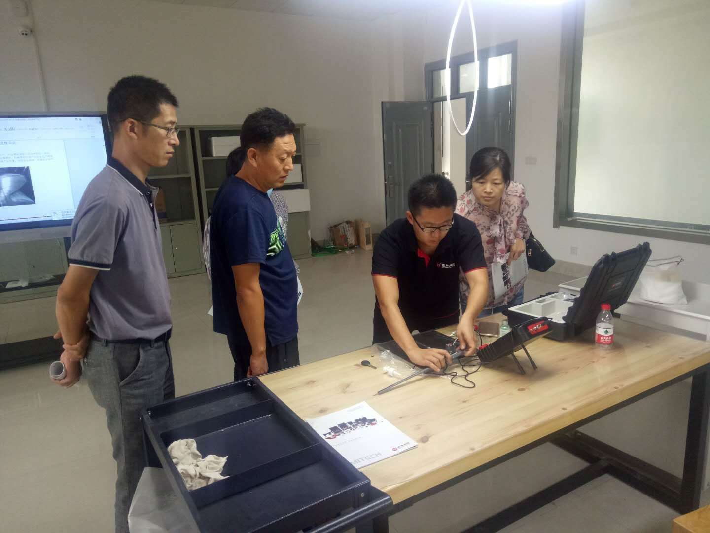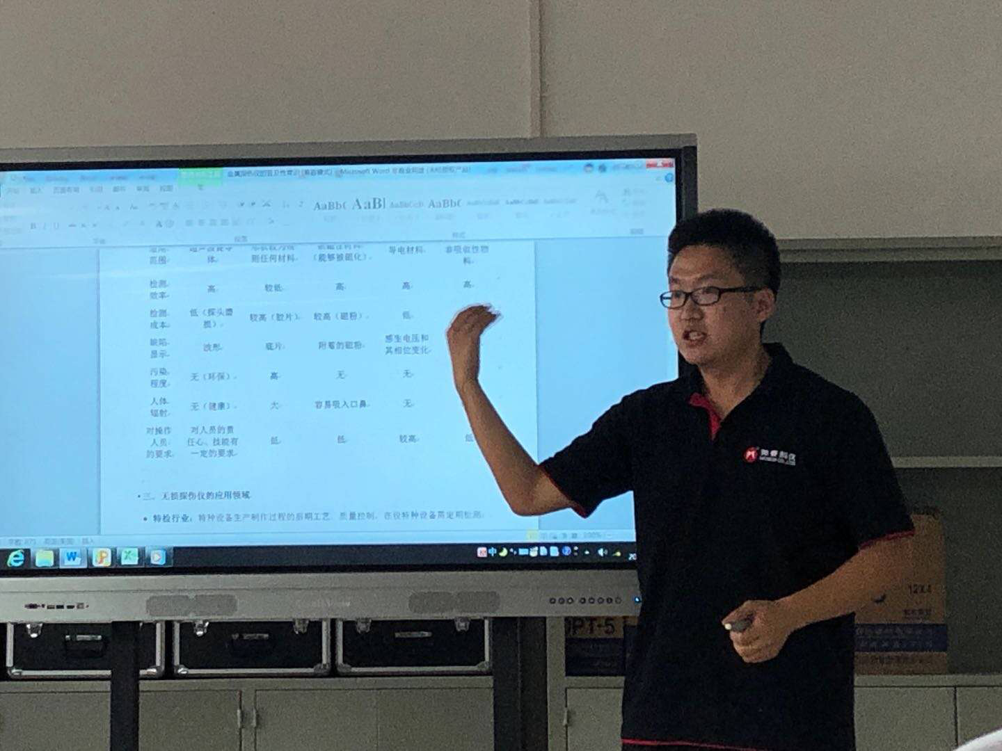 2020年9月16日至17日,美泰科儀派出技術工程師上門為日照地區某學院提供超聲波探傷儀現場交貨培訓,并給予專業學科的教師講解我司為該專業定制的教學課件及動畫演示視頻,共同探討超聲探傷教學內容大綱。