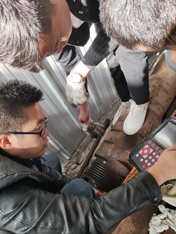 該單位隸屬于國企黃金礦業(yè)。反井鉆機施工中主要負責地下井筒破碎巖石,清理開采運礦通道,對于后期的采礦、運輸起著極為重要的作用。由于反井鉆機是通過電機帶動液壓馬達驅動鉆桿和鉆頭高速旋轉,使導孔鉆頭受力產(chǎn)生強大的沖擊荷載,達到鉆深的目的,所以對于其使用頻率最高、磨損最嚴重的石油鉆桿的內(nèi)部無損探傷檢測極為重要,一旦施工斷裂,將會造成巨大財產(chǎn)損失。