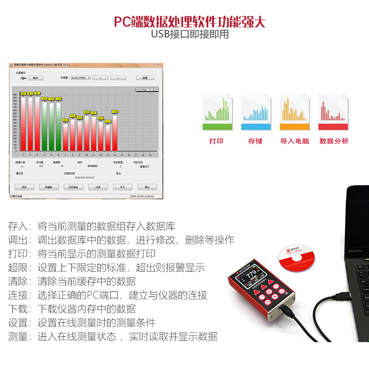 配備PC端數據處理軟件,具有傳輸測量結果、存儲管理、統計分析、生成測量報告等豐富功能。