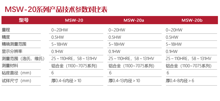 美泰MSW-20系列韋氏硬度計,量程0-20HW,測量精度0.5HW,測量范圍25~110HRE,顯示精度1HW,儀器重量0.55Kg。可測量大多數鋁合金材料硬度。被廣泛的應用于國內大多數鋁型材行業,許多門窗幕墻企業、工程質檢及技術監督部門。屬于美泰韋氏硬度計的標準配置。 |