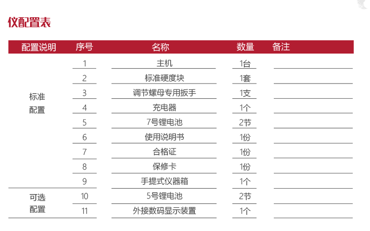 | 美泰韋氏硬度計儀附有專用的隨機裝箱資料。包括產品合格證、保修卡、產品說明書、裝箱清單。隨機資料采用專用的銅版紙印制,說明書的圖文設計美觀、易懂、便于長久保存。注:美泰品牌系列產品的隨機資料均可登陸www.meijiausa.com下載電子版。 | |