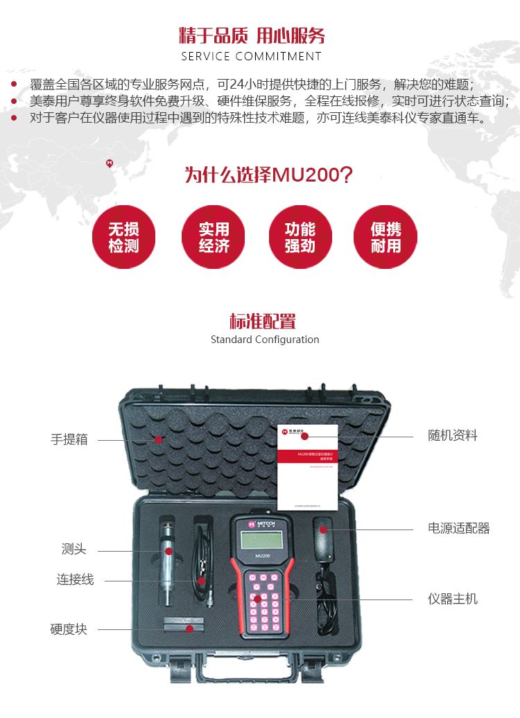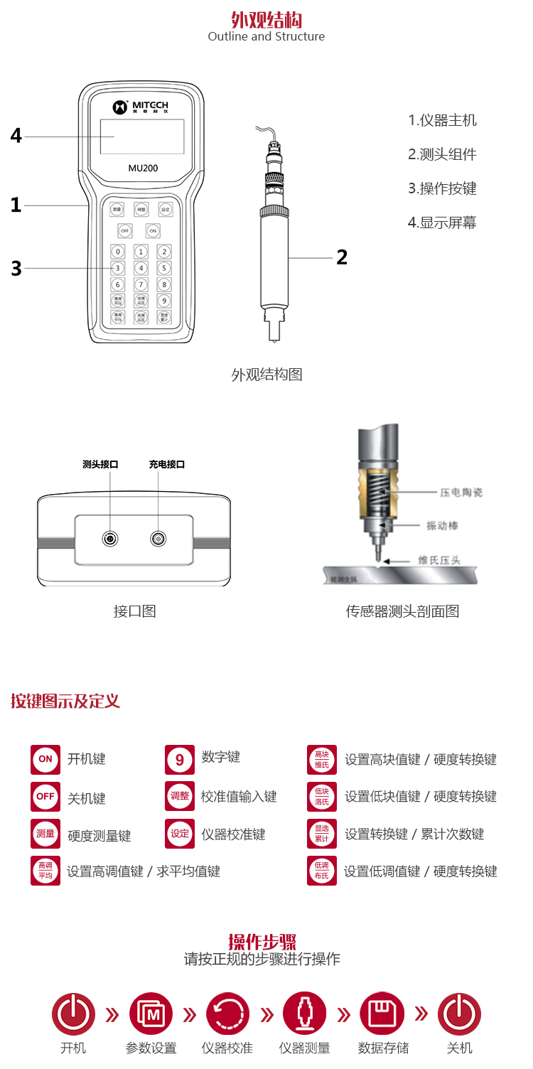| 充電時間5h,輸出電壓3.7V,美泰MU200超聲波硬度計內置鋰電池采用低功耗設計理念設計,超長待機。 | |