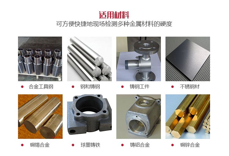 廣泛應用于齒輪、軸承、各種金屬鍍層(如滲氮層、滲碳層、電鍍層、鉻層等)、金屬薄片、金屬薄板、異形工件、不可移動的大型工件、圓柱擊針、汽摩配件、各種模具等需要硬度檢測的產品。