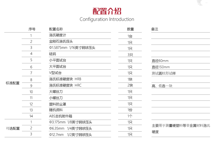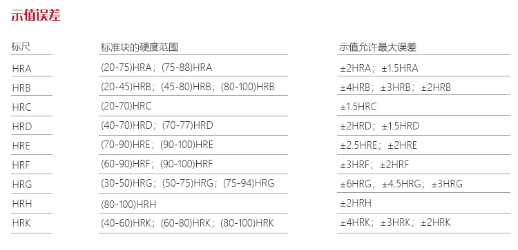 | 可選配的其他洛氏標尺 | HRD、HRF、HRG、HRH、HRE、HRK、HRL、HRM、HRP、HRR、HRS、HRV |