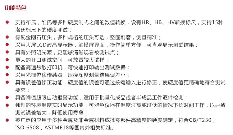 | 測試范圍 | HRA:20-95、HRB:10-100、HRC:10-70、HRD:40-77、HRE:70-100、HRF:60-100、HRG:30-94、HRH:80-100、HRK:40-100、HRL:5 |