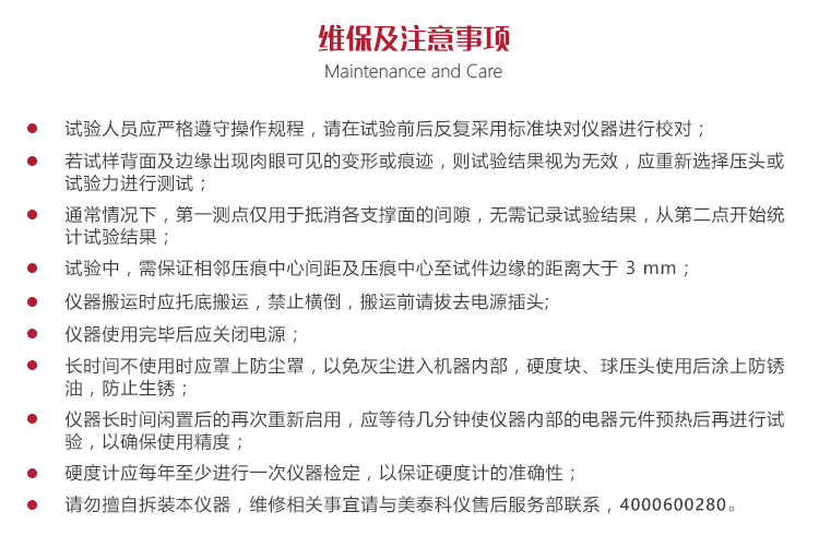 請勿擅自拆裝本儀器,維修相關事宜請與美泰科儀售后服務部聯系,4000600280。