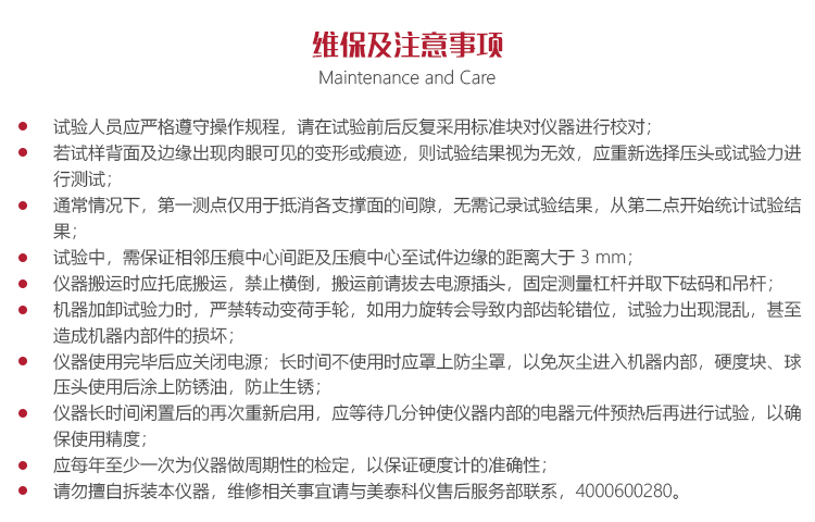 儀器的保養(yǎng)與維護(hù)?試驗人員應(yīng)嚴(yán)格遵守操作規(guī)程,請在試驗前后反復(fù)采用標(biāo)準(zhǔn)塊對儀器進(jìn)行校對;