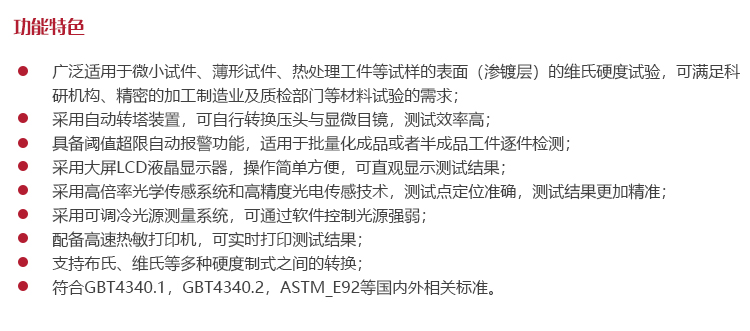 ?符合ISO6507、ASTM E384、JIS Z2244、GB/T 4340等國內(nèi)外相關(guān)標(biāo)準(zhǔn)。
