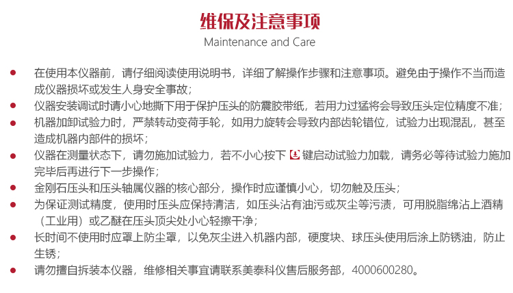 ?長時間不使用時應(yīng)罩上防塵罩,以免灰塵進入內(nèi)部,硬度塊、球壓頭使用后涂上防銹油,防止生銹;