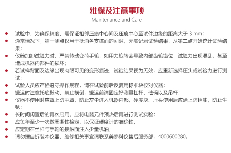 儀器的保養與維護?試驗中,為確保精度,需保證相鄰壓痕中心間及壓痕中心至試件邊緣的距離大于 3 mm;