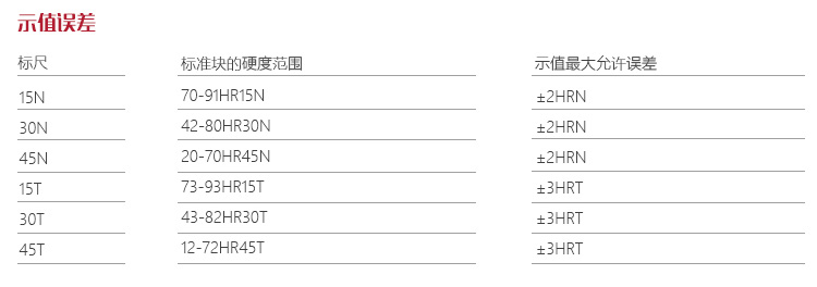 | 洛氏標尺 | HR15N、HR30N、HR45N、HR15T、HR30T、HR45T、HR15W、HR30W HR45W、HR15X、HR30X、HR45X、HR15Y、HR30Y、HR45Y |