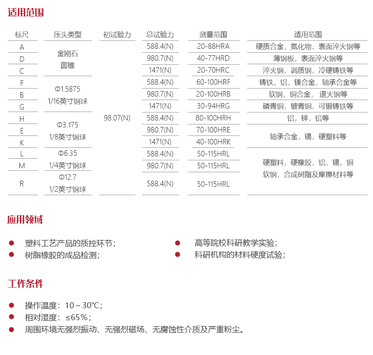 儀器特點?被廣泛應用于測定塑料、硬橡膠、合成樹脂、摩擦材料以及較軟金屬的高精度洛氏硬度測定;