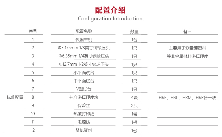| 壓頭規格 | Φ3.175mm鋼球壓頭;Φ6.35mm鋼球壓頭;Φ12.7mm鋼球壓頭 |