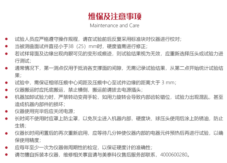 儀器的保養(yǎng)與維護(hù)? 試驗(yàn)人員應(yīng)嚴(yán)格遵守操作規(guī)程,請(qǐng)?jiān)谠囼?yàn)前后反復(fù)采用標(biāo)準(zhǔn)塊對(duì)儀器進(jìn)行校對(duì);
