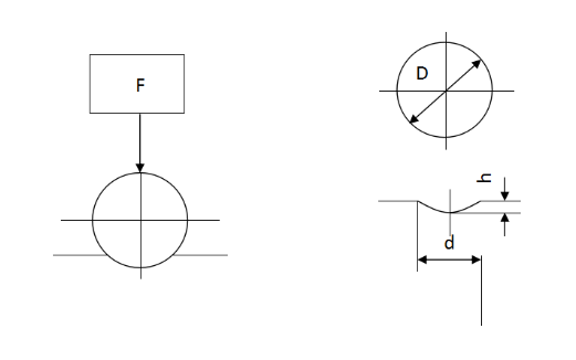 公式中:F:通過鋼球加在試樣上的試驗力,單位為N;