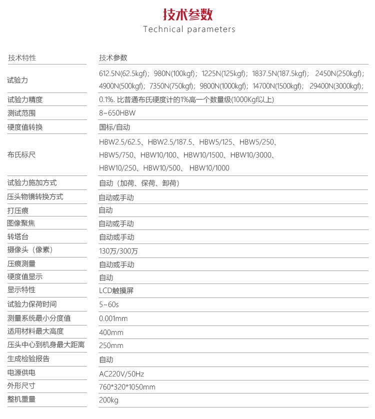 | 試驗力精度 | 0.1%. 比普通布氏硬度計的1%高一個數量級(1000Kgf以上) |