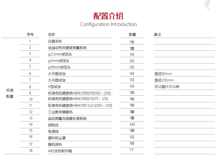 | 布氏標尺 | HBW2.5/62.5、HBW2.5/187.5、HBW5/125、HBW5/250、HBW5/750、HBW10/100、HBW10/1500、HBW10/3000、HBW10/250、HBW10/ |