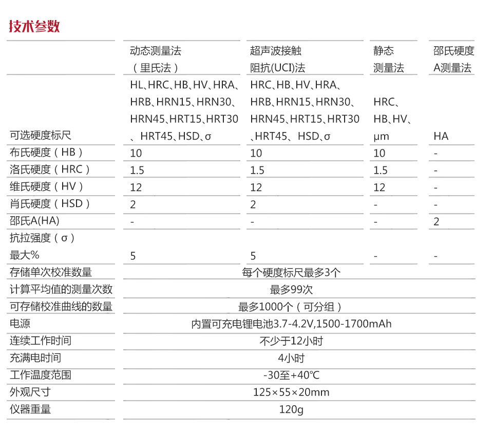 儀器特點?基于3種測量方法,可用于各類金屬和塑料硬度及抗拉強(qiáng)度σ測試;