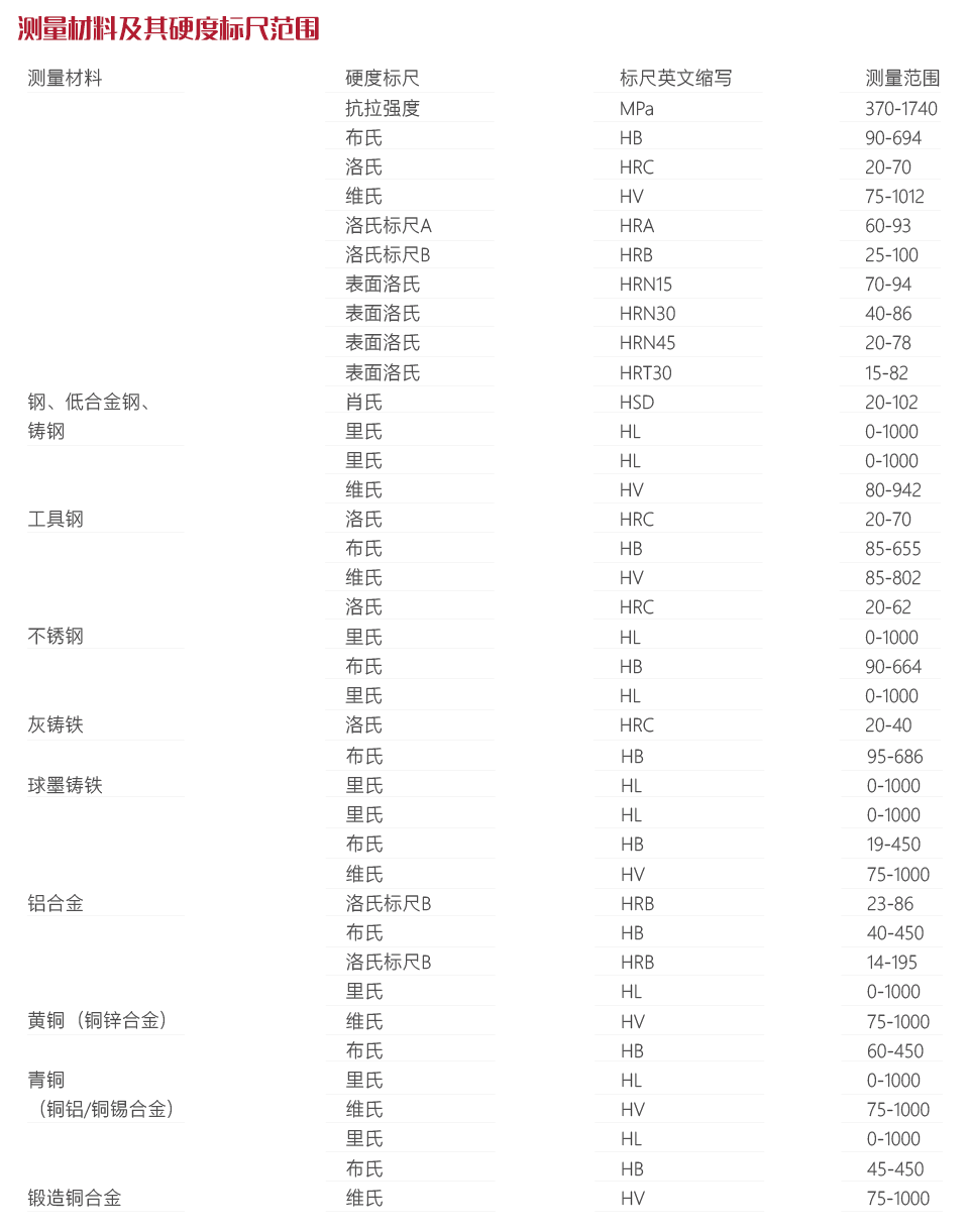 ?可將測量結(jié)果換算成符合ASTM E140和ISO 18265的標(biāo)準(zhǔn)硬度標(biāo)尺。
