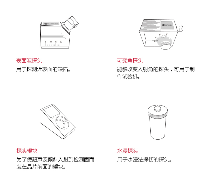 | 探頭類型 | 直探頭、斜探頭、雙晶探頭、穿透探頭 |