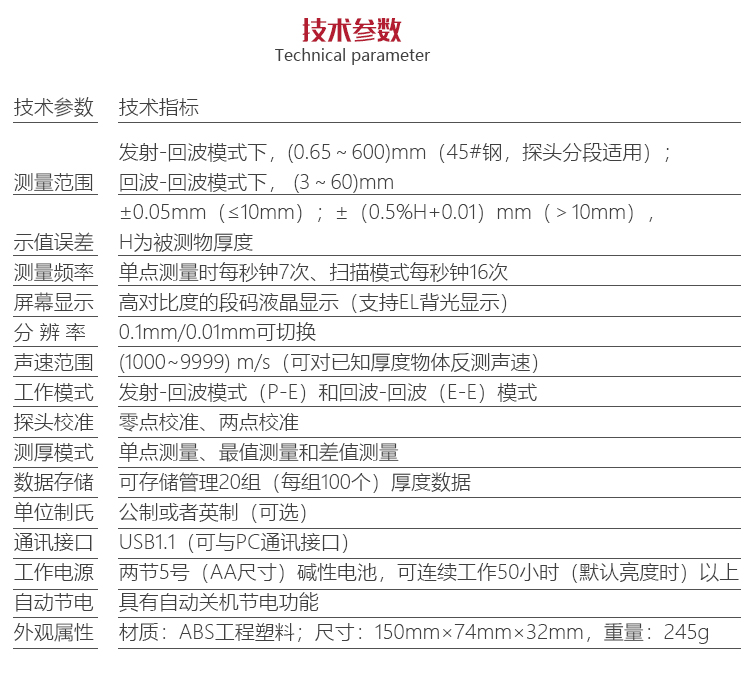 | 測厚模式 | 發射-回波模式(P-E)和回波-回波(E-E)模式 |