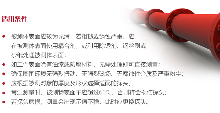 若被測體表面有大量耦合劑時,當探頭離開被測體表面時,耦合劑會引起誤測。因此測量結束時,應迅速將探頭移開被測體表面。