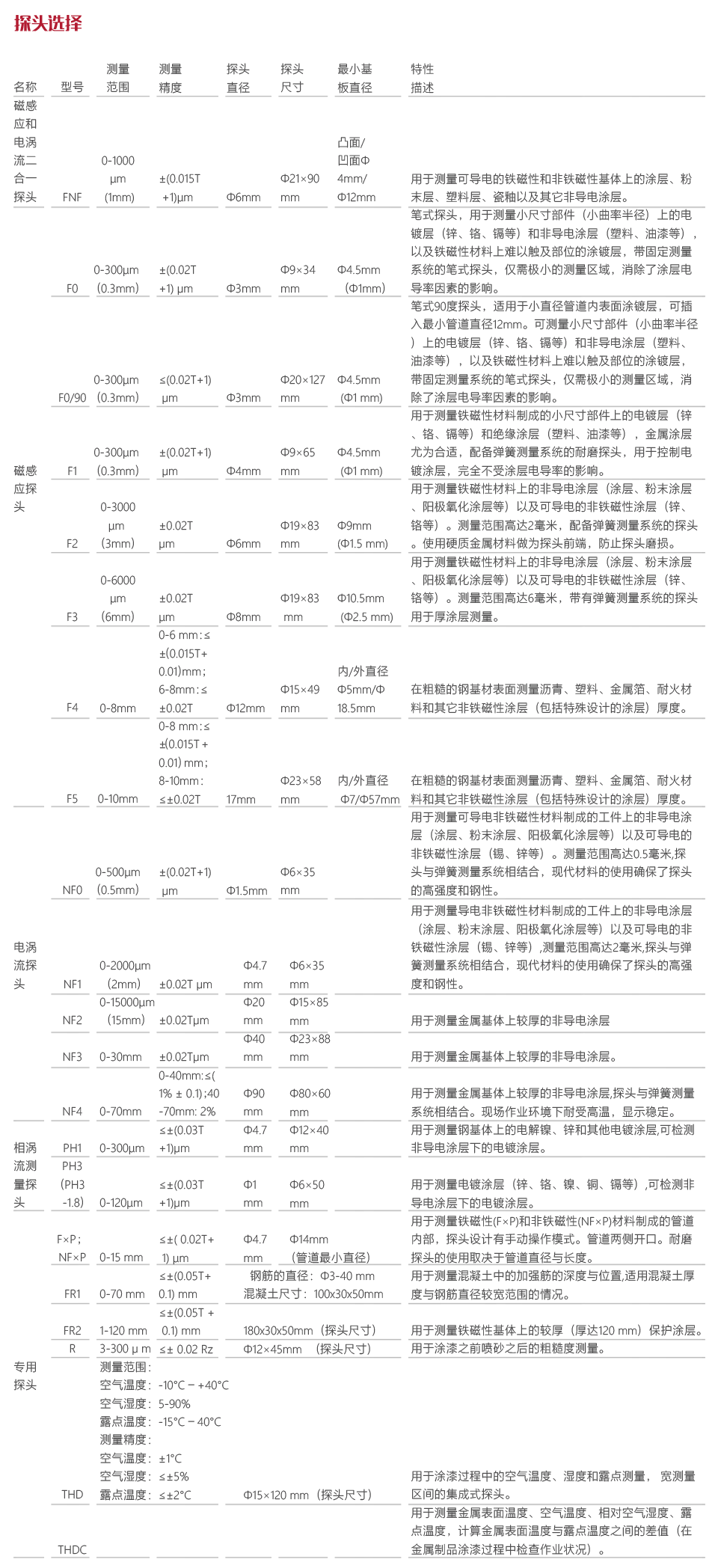 工作原理本儀器采用了渦流相、渦流參數(頻率)和脈沖磁感應的測厚方法,可無損地測量磁性金屬 (如鋼、鐵、鎳、合金和硬磁性鋼等) 基體上非磁性覆蓋層的厚度(如鋁、鉻、銅、琺瑯、橡膠、油漆等),及非磁性金屬基體(如銅、鋁、不銹鋼、鋅、錫等)上非導電覆蓋層的厚度(如:琺瑯、橡膠、油漆、塑料等)