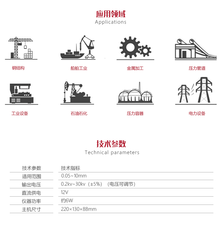 儀器特點適用于不同厚度的搪玻璃、玻璃鋼、環氧煤瀝青和橡膠襯里等涂層的質量檢測;